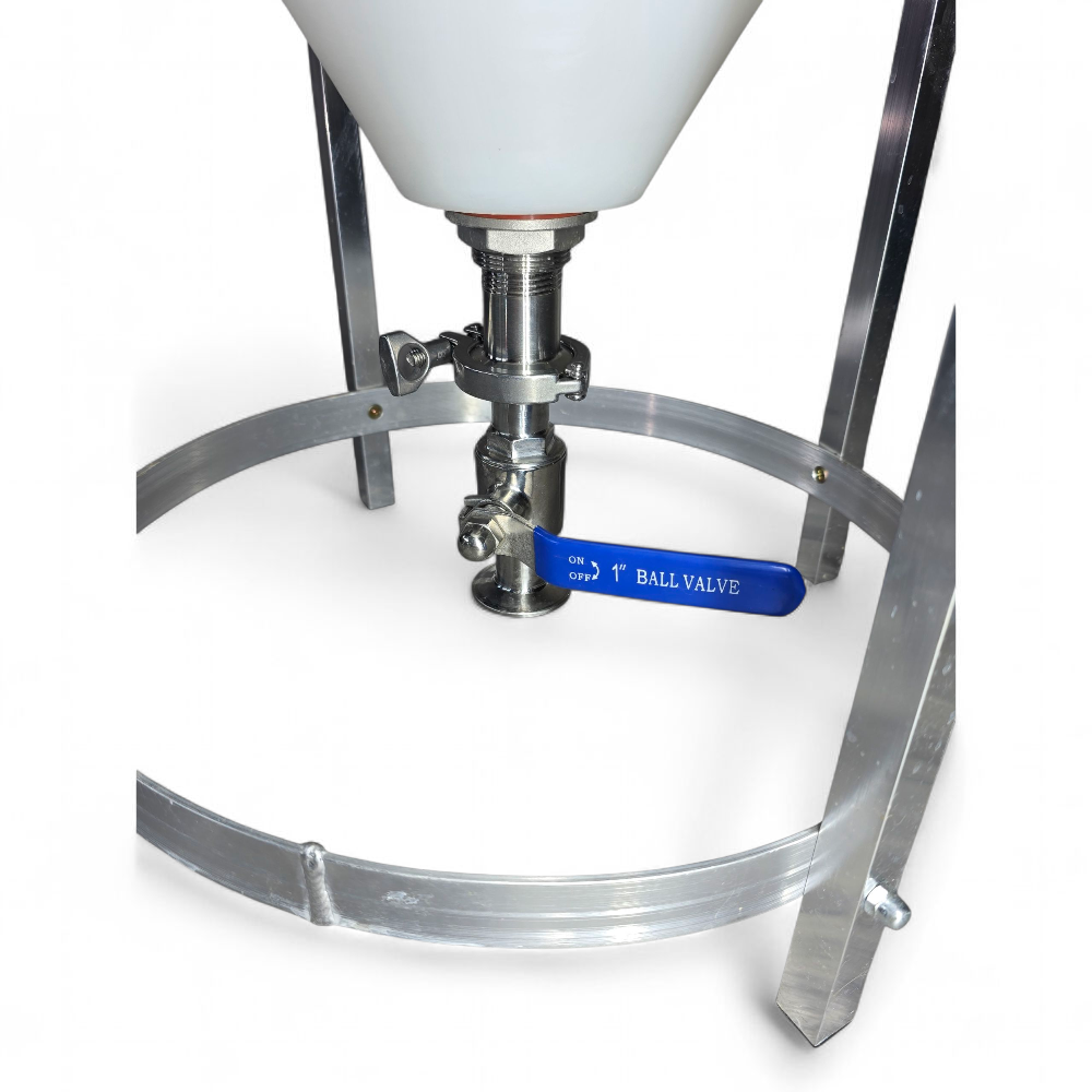 - Construction: Food-grade polyethylene tank, Aluminum stand & SS304 Weldless Bulkheads and Food Grade gaskets